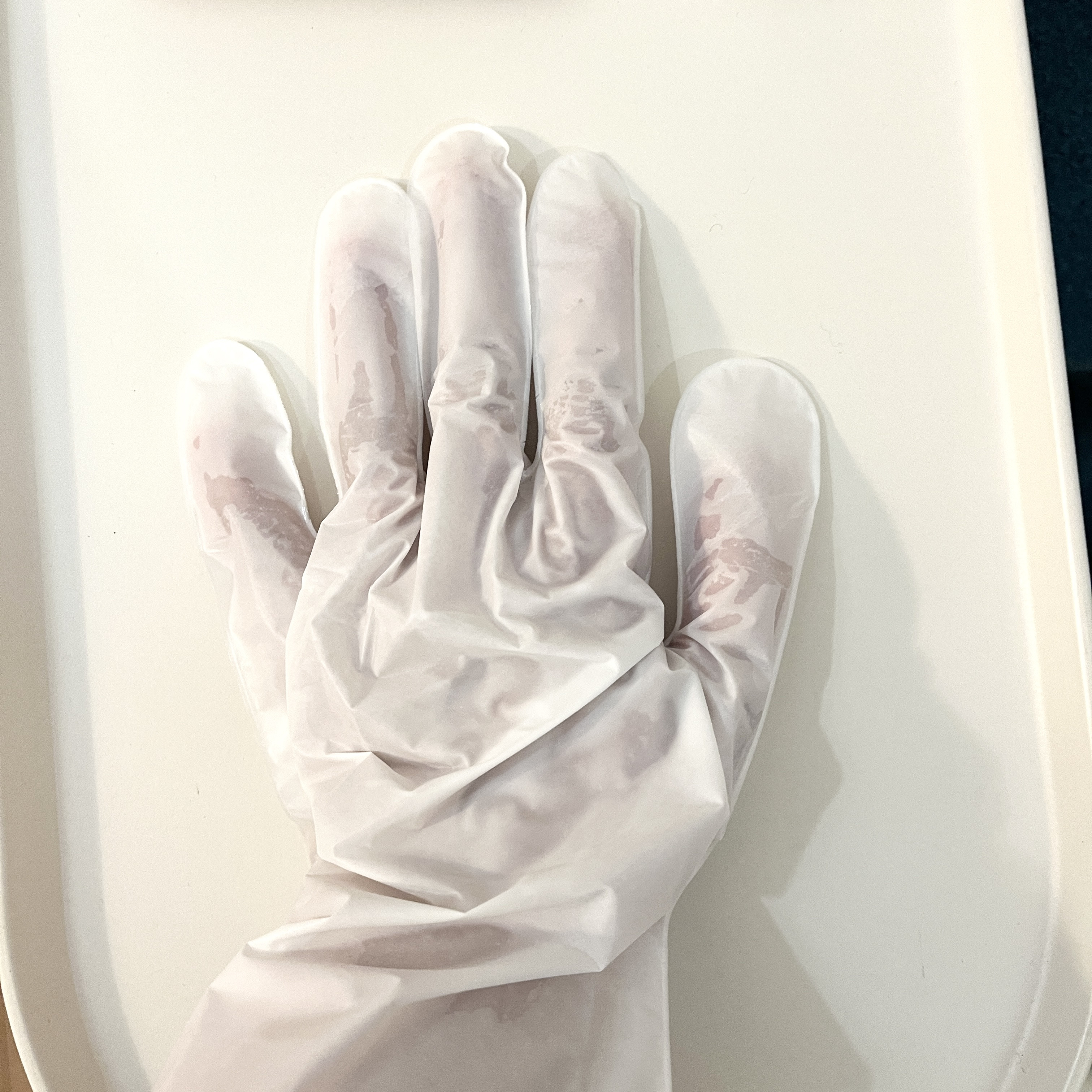ちょっと夢がない見た目ではありますが、パック後のお肌の変化にはきっと「いつものハンドマッサージ」との違いを実感していただけるのではないかと思っております。